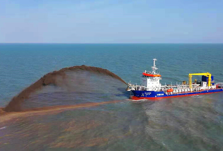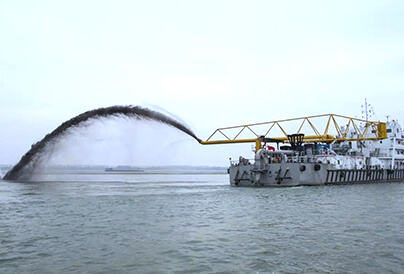 利用挖泥船將航道內(nèi)的泥土挖出后,使用管線將挖出的泥土排放到需要進(jìn)行回填的港口或碼頭上,通過泥土回填的方式來使港口和碼頭填筑到需要建設(shè)的高度,這便是吹填工程。